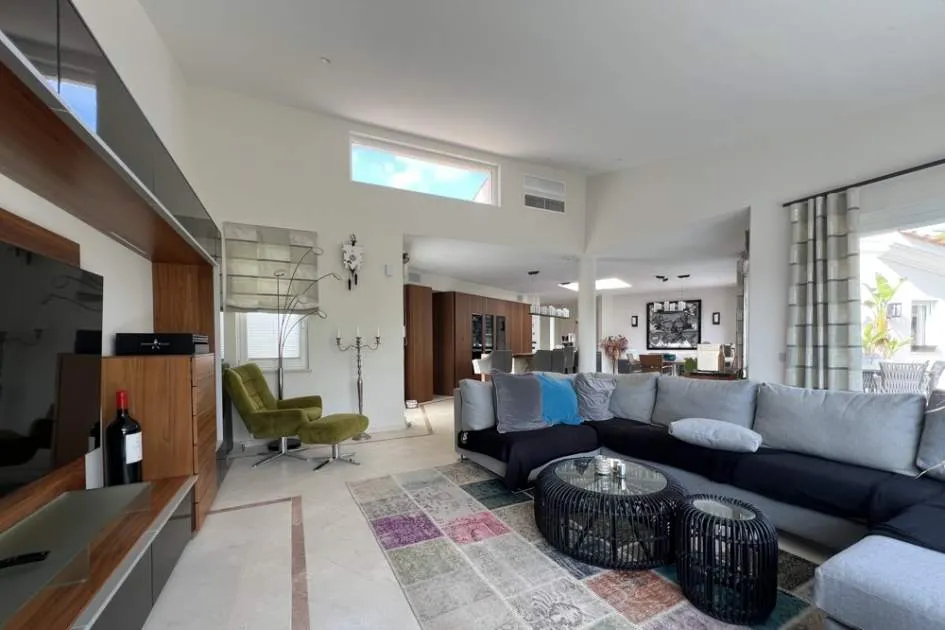 The villa is set on a generous plot of approximately 838 m² and offers an approximate living area of 352 m², characterized by bright spaces and double-glazed windows that create a cozy and energy-efficient atmosphere.