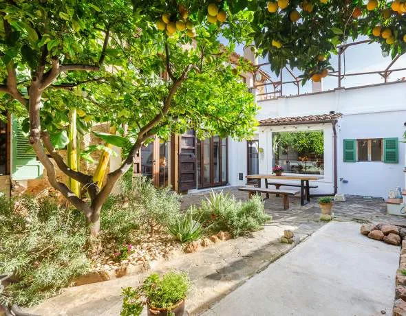 This lovely village house, dating back to 1850, is a true gem: stylishly refurbished, full of character, with a beautiful patio and stunning views. It has been modernized with great attention to detail with some final renovation work currently underway to give the house its finishing touch. Original exposed beams, high-quality parquet floors, a rustic wood stove, as well as new double doors in Mallorcan style and carefully selected details give the house a cosy atmosphere. Light earthy tones and a southwest orientation ensure a sun-drenched, warm living environment.