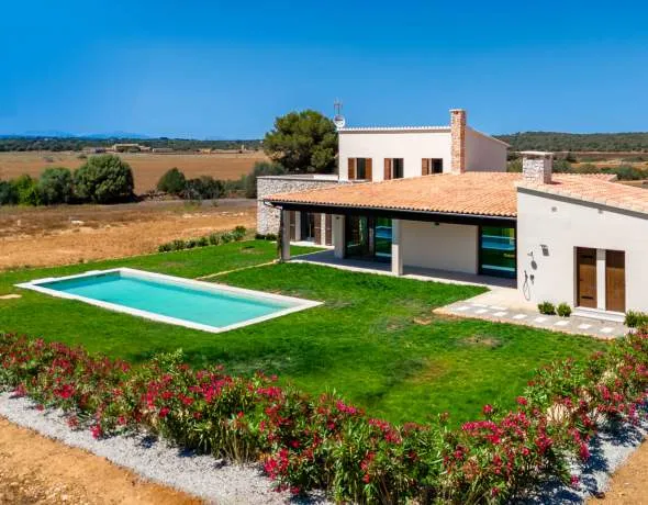 This modern new-build finca is situated in a sought-after location near Ses Salines and was constructed using high-quality materials. The plot of approx. 20,128 sqm guarantees plenty of privacy as well as impressive panoramic views of the surrounding natural landscape.