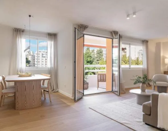 Details: This stylishly renovated apartment is located in an absolute prime location – directly at the famous Palma Tennis Club in the sought-after Santa Catalina neighborhood. Surrounded by trendy cafés, restaurants, and boutiques, it offers an urban lifestyle in the heart of Palma, just a few minutes from the harbor and the renowned market hall. With a built area of 125 sqm, the apartment features three spacious double bedrooms and two bathrooms, one of which is en suite. The open living and dining area, with an adjoining modern fitted kitchen, creates a bright and inviting atmosphere. A practical utility room completes the thoughtfully designed layout. The high-quality laminate flooring adds warmth and comfort to the space. An integrated air conditioning system (heating/cooling) ensures year-round comfort. The fully equipped kitchen includes all standard appliances and utensils. Additionally, custom-made furniture is included in the price. In addition to three different terrace areas, some with views of the Palma Tennis Club, the communal terrace offers breathtaking panoramic views of the sea, the harbor, and all the way to the cathedral. The offering is completed by the opportunity to purchase a parking space in the building for €100,000. Location & surrounding area: The district of Santa Catalina is one of the typical zones of "Ciudad de Palma", home to the famous "Mercat de Santa Catalina", which still retains the flavor of traditional markets where you can buy typical products of the Majorcan countryside and Mediterranean Sea. Originally a fishing district because of its proximity to the sea, the typical dwellings of 1 or 2 floors have been conserved with their balconies and façades with Majorcan shutters and urban morphology that is carefully preserved. Among the inhabitants of Santa Catalina you can find people from all around the world in bars out in the sun, shopping in the market or buying in the street, as well as people who have chosen to live in the town, bringing their culture and giving the neighborhood a touch of class and elegance. With regard to the gastronomic and leisure offer, the town is one the most generous of the island, and in the happy streets you will find the greatest variety of bars and restaurants from the simple and typical of the neighborhood to cutting edge and sophisticated.