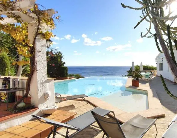This impressive seafront property offering spectacular 200º views over the Mediterranean and a magnificent infinity pool that blends seamlessly with the horizon. The house is fully equipped, partially renovated, and features central gas heating, providing a sophisticated and comfortable atmosphere all year round.