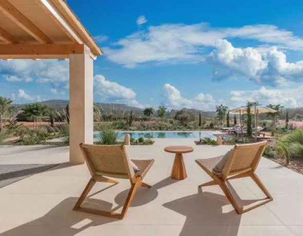 This luxurious new-build finca is situated on a plot of approx. 19,372 sqm in a popular location in Cas Concos, nestled in the Mediterranean landscape. The sophisticated interplay of the highest quality materials, Mediterranean elements and contemporary design creates a living environment of exceptional comfort and harmonious elegance.