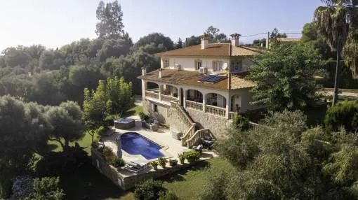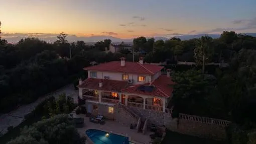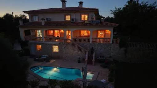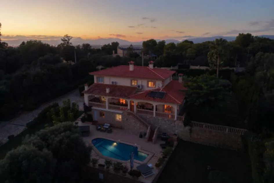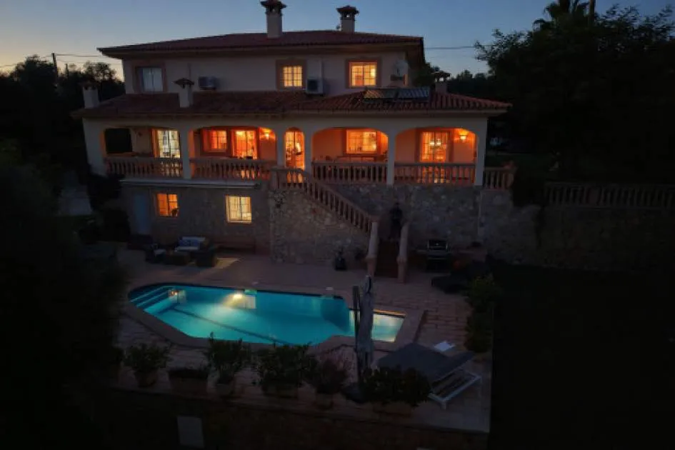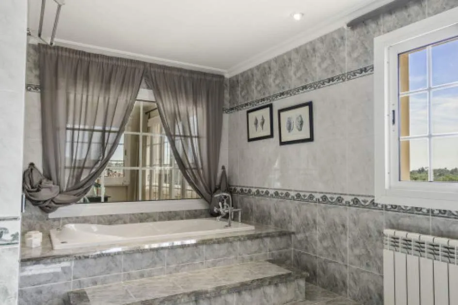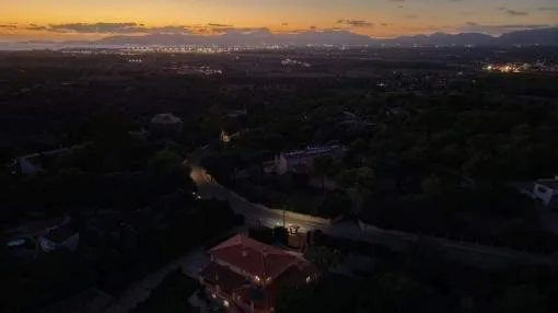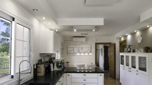 The villa is also technically impressive in all areas. Marble floors, fiber optic internet and satellite TV offer comfort, while a modern alarm system, double glazing and an electric gate guarantee security and energy efficiency. Photovoltaics, solar thermal energy, cistern, own well and municipal connections ensure a sustainable supply. Central oil heating, air conditioning, infrared heaters and two fireplaces ensure a pleasant indoor climate.