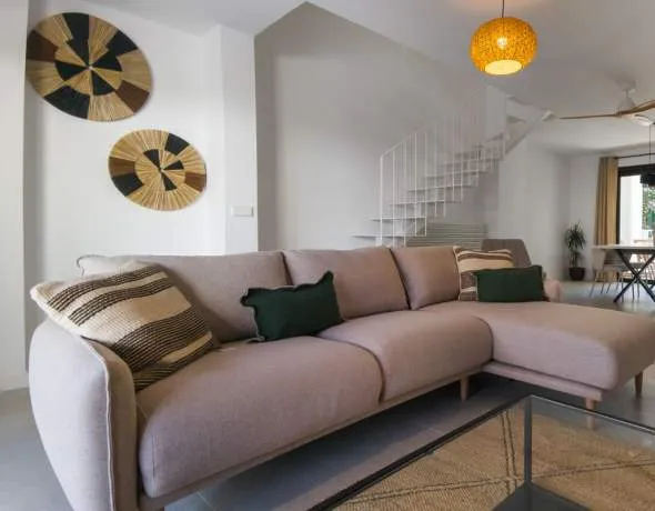 The duplex has three spacious and bright bedrooms, designer kitchen equipped by the prestigious studio Abitarum from Palma with Siemens appliances, Bora induction hob with central extraction, Hans Grohe taps and a large central island. It has an aerothermal air conditioning system, ducted air conditioning with heat pump and heating by means of designer radiators with individual control per room. The interior carpentry is of high quality, with solid white lacquered doors, fitted wardrobes lined on the inside and an open dressing room. The master bathroom offers a modern design with double washbasin, free-standing bathtub and large shower tray, as well as built-in low-flow taps and Duravit sanitary ware. The floors are large-format porcelain tiles with non-slip treatment on exteriors, and the property comes with false ceilings, smooth paintwork and top quality finishes.