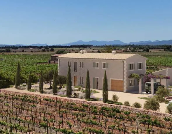 This exceptional finca near Binissalem is built on an existing vineyard, set on a plot of over 10 hectares, with a constructed area of more than 330 m². The property offers breathtaking panoramic views over multiple vineyards, stretching all the way to the Tramuntana mountains. Renowned wine producers such as Macià Batle and Son Prim are nearby.