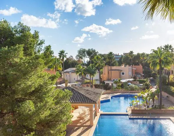 This exclusive penthouse is part of a luxurious residential complex consisting of three apartment blocks and ten villas, a wonderful pool area, an underground car park, outdoor parking spaces and a barbecue house. It is situated just a few minutes from the Port Adriano marina and borders directly on the Santa Ponsa III golf course. Despite the quiet location, there is good access to the infrastructure of the south-west of the island. Renowned golf courses, exclusive marinas, picturesque beaches and trendy beach clubs are all within easy reach. To Palma and the airport it takes 25 respectively 30 minutes by car.
