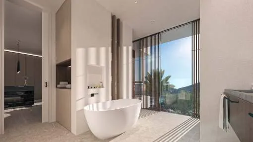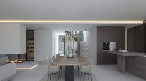 Planned features include double-glazed aluminium sliding windows; smart home control for the home, lighting and technology; air conditioning; underfloor heating via a heat pump; a 30 kW photovoltaic system with battery storage; and much more besides.