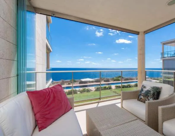 Exclusive sea view apartment in first sea line in popular residential complex in Cala Figuera