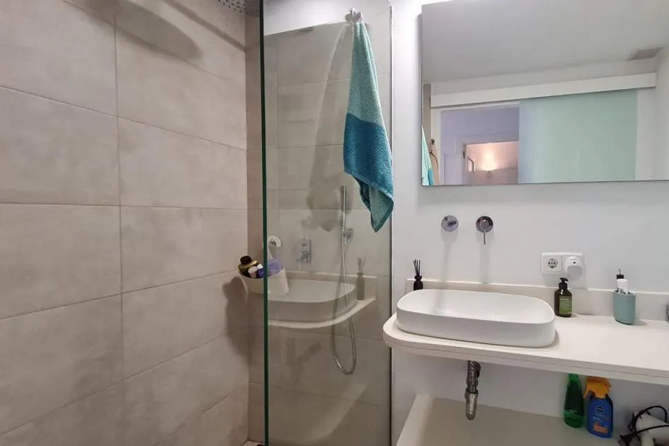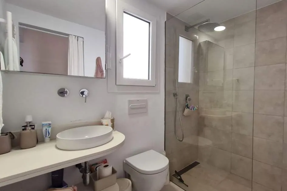 The exterior is complemented by a covered balcony of about 8 m², offering uninterrupted views of the sea and the mountains. A unique Mediterranean backdrop enhanced by the tranquility of an area free from bars or restaurants directly below the apartment.