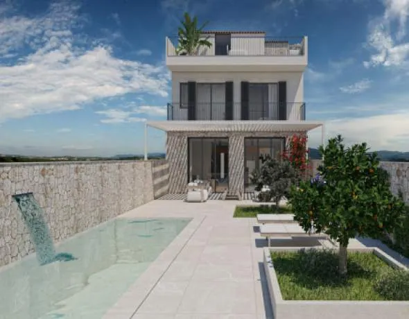 The high-quality interior design combines traditional local craftsmanship with modern elements, creating a unique and inviting living atmosphere. The outdoor area will be beautifully landscaped with a Mediterranean garden and a swimming pool – perfect for relaxation and enjoying the island lifestyle.