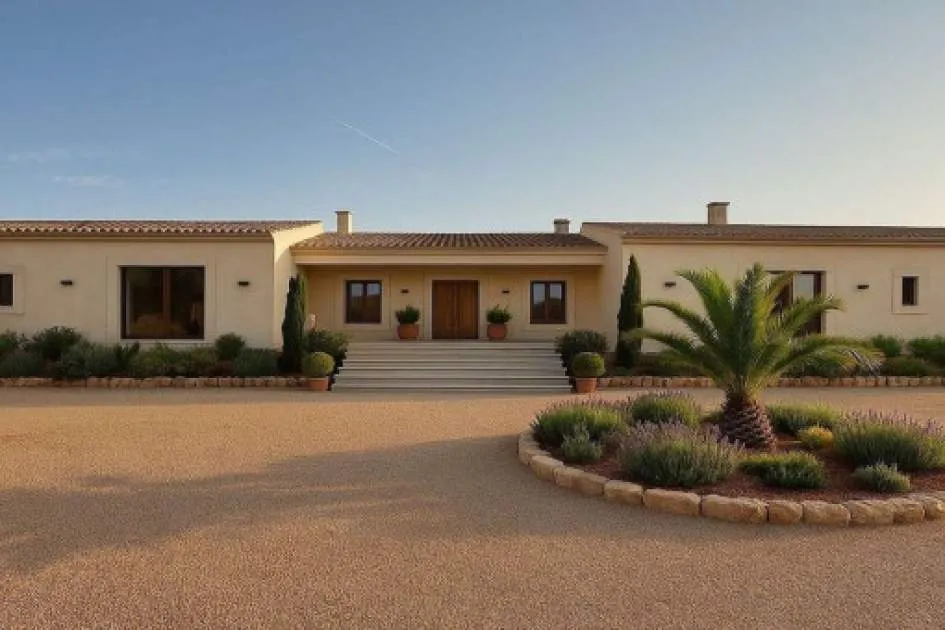 Details: Fantastic single-storey finca in Mediterranean style - pure peace, comfort and privacy This beautiful, single-storey finca combines Mediterranean flair with modern living comfort and offers you a home to feel at home in. Situated on a spacious, fully fenced plot, you can enjoy absolute tranquillity, plenty of space and a high degree of privacy. You will feel the pleasant, open atmosphere as soon as you enter the house. The spacious living and dining area forms the heart of the house and flows harmoniously into the modern, open-plan kitchen. Large window fronts flood all rooms with daylight and create a bright, friendly ambience that immediately invites you to linger. The finca has 4 spacious bedrooms, each with its own en-suite bathroom. All bedrooms also have direct access to the outdoor terraces - perfect for greeting the sun in the morning or letting your gaze wander over the pool and the well-tended garden in the evening. Various terraces and cozy seating areas await you in the outdoor area, inviting you to relax, dine al fresco or enjoy the balmy summer nights. The beautiful swimming pool forms the heart of the garden and provides welcome refreshment on hot days. There is a spacious outdoor area in front of the house with enough space for several vehicles. The entire complex has been lovingly designed and conveys a harmonious overall picture of nature, comfort and Mediterranean lightness. Other features include underfloor heating and air conditioning, which ensure a pleasant indoor climate all year round. The house is supplied with electricity via a modern solar system and receives its water via truck deliveries. This charming finca is the perfect retreat for anyone who appreciates tranquillity, nature and stylish living. The finca is being sold unfurnished and the gardens can be landscaped to your own taste. Returns from holiday lettings: For initial orientation you can use the “Porta Holiday Returns Calculator” without obligation to calculate your potential returns from holiday letting. NB: Due to the current legal situation it is possible that in certain municipalities renting restrictions may apply, or new touristic licences may not be granted. Your Porta Mallorquina real estate consultant will be pleased to advise you whether the property you have chosen is affected. Go to Returns Calculator. Location & surrounding area: In terms of surface area, Llucmajor is the largest municipal county on the island of Majorca and is located in the south. Its population amounts to 20,000 inhabitants. The small city includes 4 supermarkets, some well loved cafés and tapa-bars, and even a thrice-weekly fruit and vegetable market, taking place in the very recently renovated town centre, with its Plaza de España and the second largest church on the island. The picturesque hill-location of Randa on the mountain of the same name, which is the most elevated point in the island’s centre, houses three sanctuaries, and is located slightly north of the town. Llucmajor has developed into an economic and popular residential location, due to the new motor-way connection to Palma. The Marriott Son Antem Golf Resort and Spa, and nearby yacht clubs make Llucmajor an interesting and central location for planning pass-times and excursions. The Es Trenc natural beach, one of the nicest on the island and with a Caribbean similarity, lies just 15 car minutes from Llucmajor.