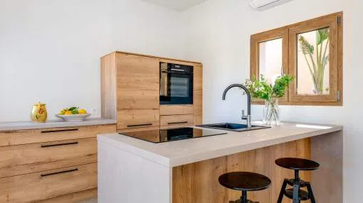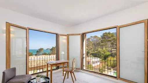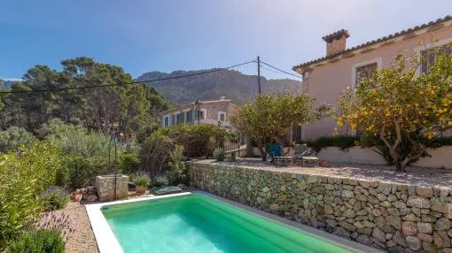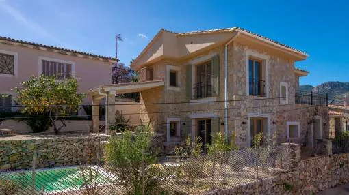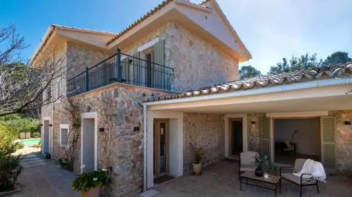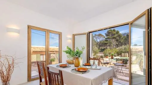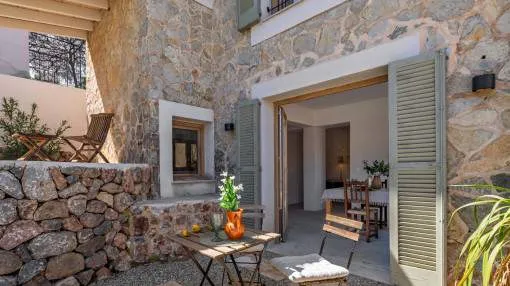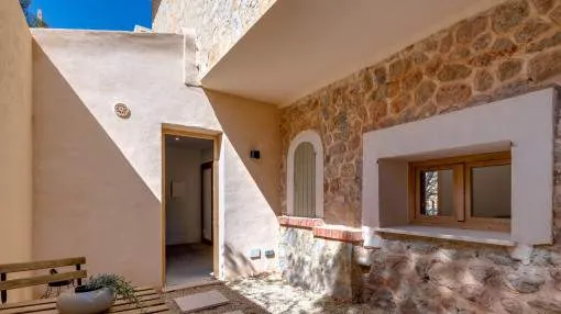 Details: Here an exclusive villa located in the picturesque coastal region between Banyalbufar and Valldemossa. Just a few meters from the beach. With the stunning backdrop of the Mediterranean coast, this property offers privacy and exclusivity in one of the most sought after areas of Mallorca. Discover your new home in this port of Mallorca, an elegant and bright villa, an oasis of peace and charm. This property, built in 1970 and recently renovated (2025) in perfect minimalist style while preserving its Majorcan character. Its generous living space is spread over two floors. On the first floor there are 2 areas: one completely open-plan with the spacious living room, dining room and kitchen respectively, and the other consisting of an entrance and a bedroom with bathroom. In very Mediterranean style, you can go directly from the first floor to the various terraces and patios. From the living room a staircase leads to the second floor where there are 2 more bedrooms with their stylish bathrooms, en suite and beautiful views. From the master bedroom there is access to the terrace with breathtaking views to the sea and the mountains. In total there are three spacious bedrooms, very bright, each with its own designer bathroom, providing the touch in the smallest detail, and beautiful views as well. The fireplace in the living room with its warmth turns the living room into a cosy retreat. The house is equipped with Fujitsu air conditioning (hot and cold) of high efficiency. In the dynamic exteriors, surrounded by terraces, there is also a large swimming pool and Mediterranean garden easy to maintain. This beautiful property is ideal for those looking for a luxurious lifestyle and to enjoy from home the beauty of pure nature, surrounded by some of the most beautiful hiking trails of the island, in the natural park of the Sierra de Tramontana. Returns from holiday lettings: For initial orientation you can use the “Porta Holiday Returns Calculator” without obligation to calculate your potential returns from holiday letting. NB: Due to the current legal situation it is possible that in certain municipalities renting restrictions may apply, or new touristic licences may not be granted. Your Porta Mallorquina real estate consultant will be pleased to advise you whether the property you have chosen is affected. Go to Returns Calculator. Location & surrounding area: The old town of Banyalbufar which is bathed in country side and surrounded by terraces can be found on the northwest coast of Mallorca. Here one finds the original side of Mallorca and light tourism. Many pinewoods, a fantastic view of the sea, a steep coast due to geographical conditions and a small bay with a beach attract the more nature inclined visitors of the island.