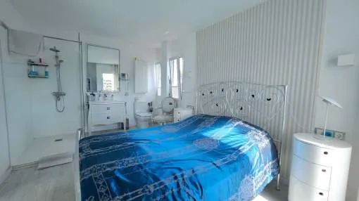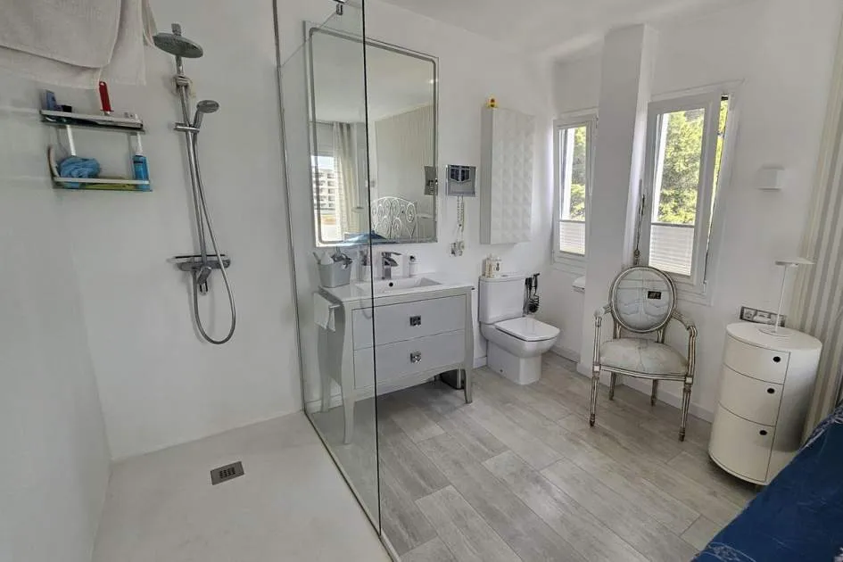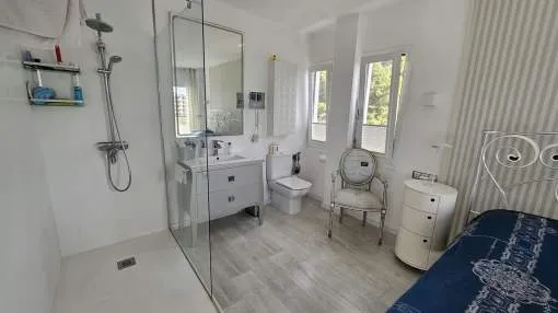 The master bedroom features an en-suite bathroom – a particular highlight of the property. Additionally, there is a separate bathroom with a shower.