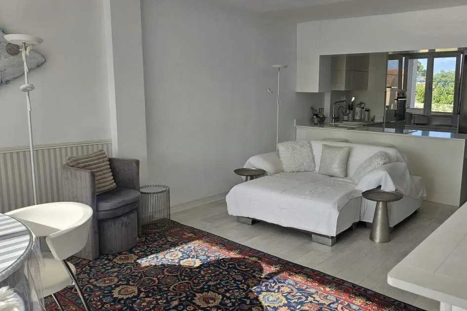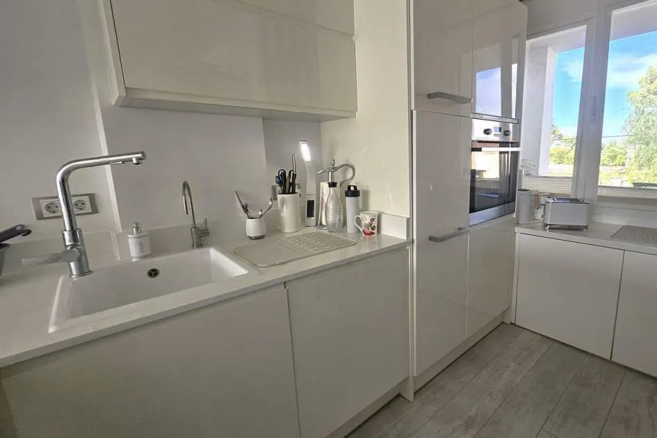 At the entrance, there is a small veranda, complemented by another balcony that provides additional outdoor space. The apartment is fully furnished and stylishly equipped – including towels, bed linen, cutlery, and everything necessary for immediate move-in. The kitchen is fitted with a water filter that provides drinkable tap water.