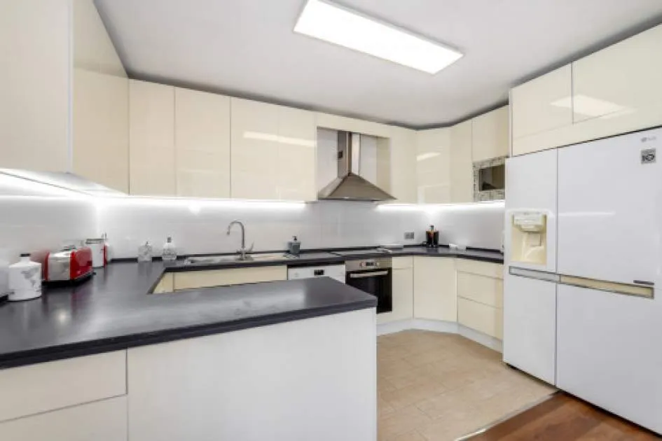 Details: This terraced house is located in a quiet and well-maintained residential area of Portals Nous, just a few minutes from the exclusive Puerto Portals marina with its renowned restaurants. Several international schools are also within easy reach, making this location particularly attractive for families. A well-kept communal pool is available to the residents of the six houses in the complex. The property also features its own private garage with direct access. The total living area of approx. 269 sqm is distributed over several levels. On the ground floor, there is a spacious living and dining area with an open-plan kitchen, as well as a small bathroom with a shower. A glass ceiling between the kitchen and dining area brings plenty of natural light into the space. From here, you can access the peaceful terrace with wooden decking, which offers a high degree of privacy and a charming, idyllic atmosphere. Upstairs, there are three bedrooms and a bathroom with a bathtub. The house also offers a private rooftop terrace, where the photovoltaic system is installed. This contributes to significantly reduced electricity costs, especially since the house is primarily heated via air conditioning units located in the living/kitchen area and the upper floor. Additionally, a fireplace stove in the living room provides warmth during cooler days. The garage offers space for one car, a laundry area, and an extra room that can be used as storage, a hobby room, or a small home gym. Returns from holiday lettings: For initial orientation you can use the “Porta Holiday Returns Calculator” without obligation to calculate your potential returns from holiday letting. NB: Due to the current legal situation it is possible that in certain municipalities renting restrictions may apply, or new touristic licences may not be granted. Your Porta Mallorquina real estate consultant will be pleased to advise you whether the property you have chosen is affected. Go to Returns Calculator. Location & surrounding area: Portals is a residential area, which is characterized for being a quiet area with a wide surfaced cove, of white sand and clean waters, in front of which emerges the island of Sales. Until the breaking out of the Spanish Civil War, the middle class families of Palma built their second residencies. In the high part is located the Oratorio, with the image of La Mare de Déu de Portals. Its famous marina Puerto Portals, built in 1987, is the centre of tourism and nocturnal entertainment for the elite, being the meeting point for the royalty, the jet set, artists and financiers.