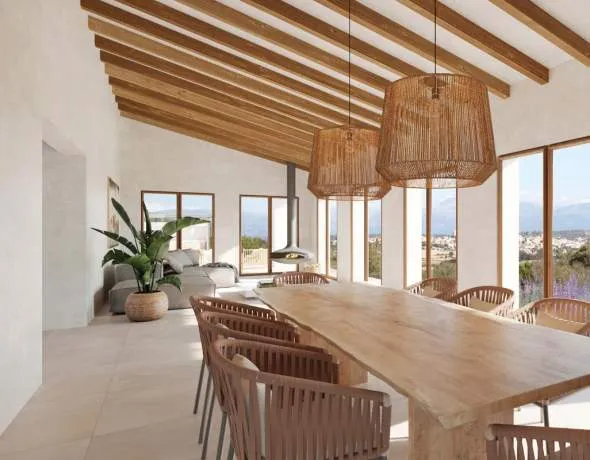 This property is located in a very hidden and quiet area of Montuiri. The project is a bright, nice, modern house with 4 bedrooms all of them with bathroom en Suite, a big living/dining room and kitchen. Very good outdoor area with a 12 meter long pool with a pool house (with BBQ, storage and guest toilet). Garage for 2 cars complete this superb property, finishing is planned by 2025 If you're looking for a family finca in Mallorca central do not hesitate contacting First Mallorca to see on site this property.