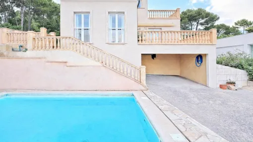 Details: This dreamlike finca with a spacious, detached house is situated in a wonderful location, just a few minutes' drive from the center of Llucmajor. The house has a natural stone façade and is set on a spacious plot of 18,000 sqm. This is divided into different areas: a lovingly tended garden with a large variety of plants and fruit trees, a separate cultivation area and a field that was formerly used for keeping horses. The property extends over 2 floors: First floor: Bright entrance hall, 2 full bathrooms, 2 bedrooms, a utility room with access to the garage, a spacious living room with a cozy wood-burning fireplace and a spacious separate kitchen. From the kitchen and living room you can access a large glazed veranda - a real highlight that can be used all year round: In summer, it can be opened up to enjoy the fresh breeze, while in winter it provides sunny warmth and protection from the cold. Second floor: Two large bedrooms, one of which has its own bathroom and private terrace, as well as an additional room that is ideal as a study or hobby room. The entire house is equipped with air conditioning (including dehumidification function) and the bathrooms have infrared radiators. Outdoor area The garden resembles a botanical park: there are numerous fruit trees (pear, plum, apple, lemon, orange, fig, almond), palm trees and various types of cacti. There is also a vegetable garden, its own fountain and many lovingly designed, idyllic spots. A large swimming pool with sun terrace and outdoor kitchen provides the perfect setting for parties and socializing with family and friends. There is also a small garden shed, which is currently used as a machine room and storage room. The finca is connected to the mains electricity and is supplied with water from the property's own well. Returns from holiday lettings: For initial orientation you can use the “Porta Holiday Returns Calculator” without obligation to calculate your potential returns from holiday letting. NB: Due to the current legal situation it is possible that in certain municipalities renting restrictions may apply, or new touristic licences may not be granted. Your Porta Mallorquina real estate consultant will be pleased to advise you whether the property you have chosen is affected. Go to Returns Calculator. Location & surrounding area: In terms of surface area, Llucmajor is the largest municipal county on the island of Majorca and is located in the south. Its population amounts to 20,000 inhabitants. The small city includes 4 supermarkets, some well loved cafés and tapa-bars, and even a thrice-weekly fruit and vegetable market, taking place in the very recently renovated town centre, with its Plaza de España and the second largest church on the island. The picturesque hill-location of Randa on the mountain of the same name, which is the most elevated point in the island’s centre, houses three sanctuaries, and is located slightly north of the town. Llucmajor has developed into an economic and popular residential location, due to the new motor-way connection to Palma. The Marriott Son Antem Golf Resort and Spa, and nearby yacht clubs make Llucmajor an interesting and central location for planning pass-times and excursions. The Es Trenc natural beach, one of the nicest on the island and with a Caribbean similarity, lies just 15 car minutes from Llucmajor.