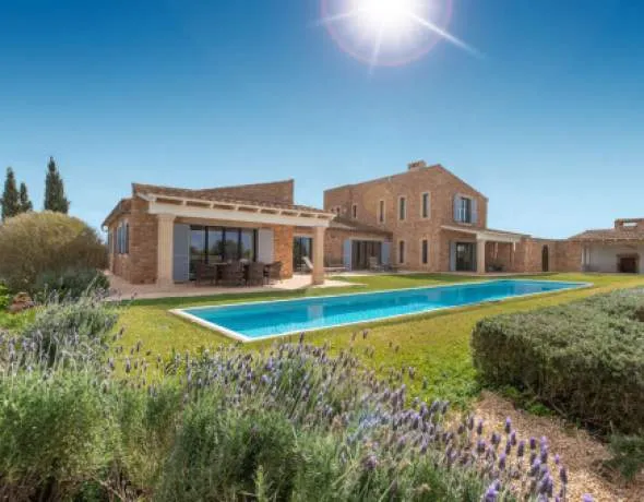This enchanting natural stone finca is set on a spacious plot of approx. 14,200 sqm and combines Mediterranean charm with modern living comfort. Surrounded by unspoiled nature, you can enjoy breathtaking 360-degree panoramic views thanks to the floor-to-ceiling windows - a place where peace and space are palpable. The idyllic village of Ses Salines is just a few minutes away.