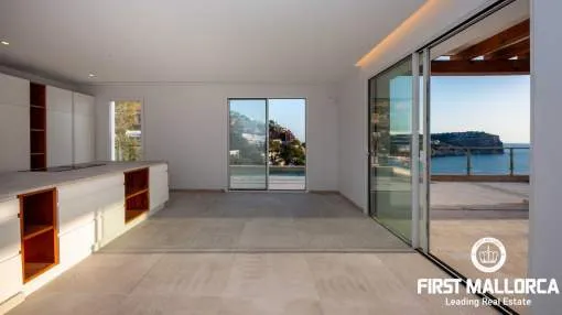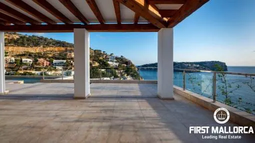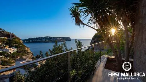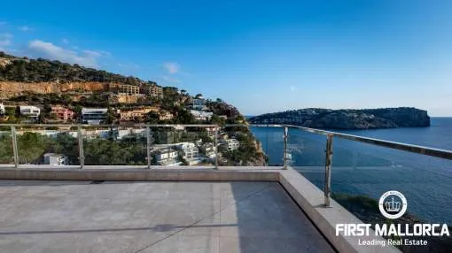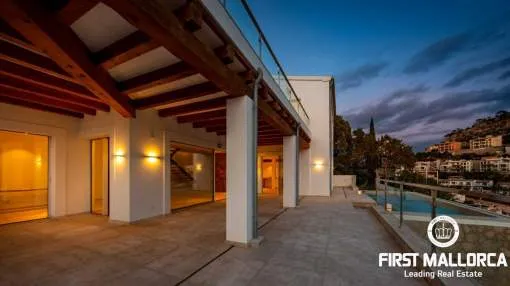 This newly built villa in Puerto de Andratx is located in a very privileged and tranquil location in Cala Moragues. Thanks to the southern orientation, the property enjoys sun all day and fantastic views of the harbour inlet and the sea.
