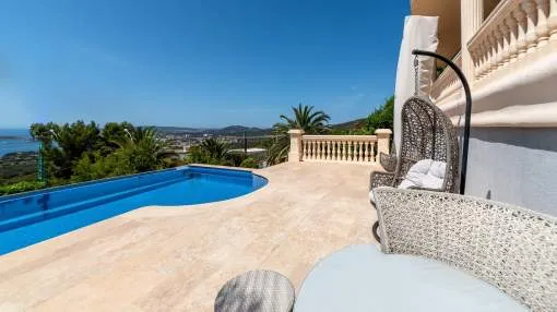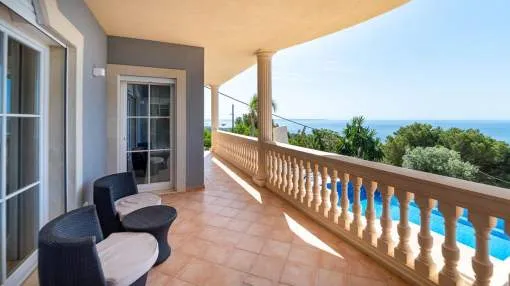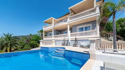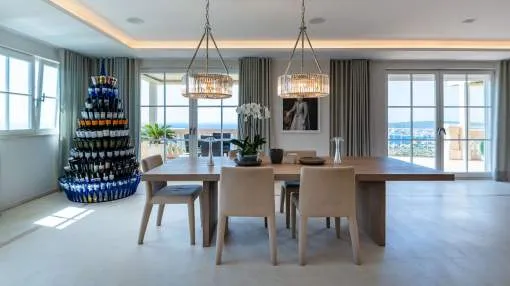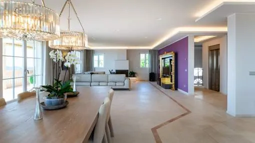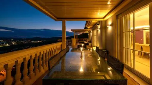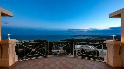 A superb Mallorca villa enjoying an elevated and privileged position on the exclusive, residential hill of Costa d´en Blanes, above the marina of Puerto Portals. This unique and sunny located property has truly magical sea views from the early morning´s marina activity reflecting the magnificence of the coloured lights shining across the bay from Palmanova.