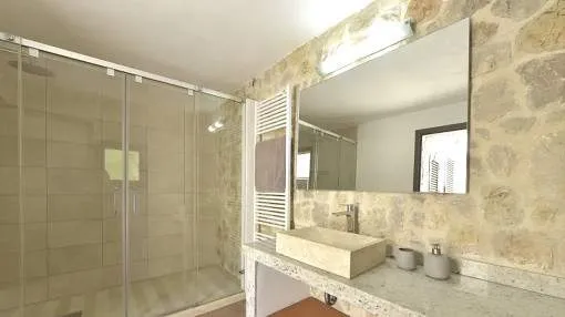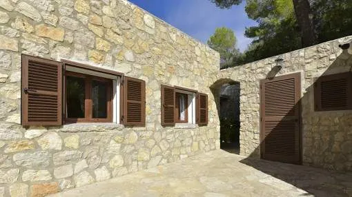 Details: This exceptional finca with authentic Mallorcan charm awaits you at the foot of the Na Penyal mountain above Cala Millor. On a spacious plot of around 7,700 sqm, surrounded by unspoiled nature, you can enjoy a privileged location with wonderful views over the countryside to the sea. The approximately 150 sqm finca is perched on the highest point of the plot and offers a warm and inviting feeling of living in the typical rustic style of the island. The house has 3 spacious double bedrooms, 2 bathrooms, an open kitchen, a bright living and dining area as well as a practical pantry and a utility room. The lovingly designed outdoor areas are a particular highlight. The terraces, paths and walls were built stone by stone by the owner with great dedication and craftsmanship, creating a very special atmosphere. Embedded in this green oasis is the pool with intense blue water - a perfect place to enjoy peace, sun and the unique nature of Mallorca. The finca also has a valid tourist rental license for up to 5 people and therefore also offers an interesting investment opportunity. Further features include a fireplace, central heating, a private water well and a sustainable power supply via solar panels. A place full of character, privacy and Mallorcan quality of life just a few minutes from the beaches and the lively center of Cala Millor. We would be delighted to show you this special property in person. Arrange a viewing today - we look forward to hearing from you. Returns from holiday lettings: For initial orientation you can use the “Porta Holiday Returns Calculator” without obligation to calculate your potential returns from holiday letting. NB: Due to the current legal situation it is possible that in certain municipalities renting restrictions may apply, or new touristic licences may not be granted. Your Porta Mallorquina real estate consultant will be pleased to advise you whether the property you have chosen is affected. Go to Returns Calculator. Location & surrounding area: Cala Millor is one of the most popular vacation resorts on the east coast of Mallorca and is known for its perfect mix of relaxation and entertainment. The highlight is undoubtedly the almost two-kilometer-long sandy beach. It slopes gently into the turquoise waters, making it particularly popular with families with children. An extensive, palm-lined promenade runs along the beach, which is ideal for strolling, cycling or inline skating. Activities & surroundings Store & enjoy: You will find numerous boutiques, cafés and restaurants in the pedestrian zone behind the beach line. Pure nature: The Punta de n'Amer nature reserve is located at the southern end of the village. A short hike to the defense tower there offers a fantastic view over the bay. Excursions: The famous dragon caves (Cuevas del Drach) in Porto Cristo are just a short drive away. Cala Millor is an all-rounder. While families appreciate the safe bathing opportunities, couples and senior citizens enjoy the sophisticated ambience and the diverse gastronomic offerings.
