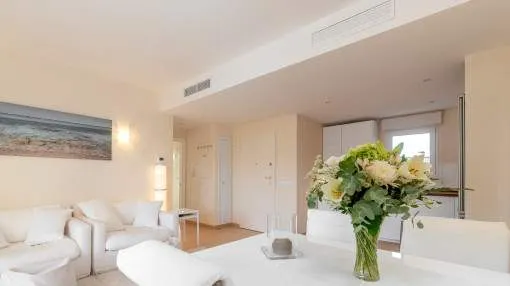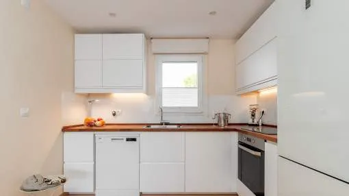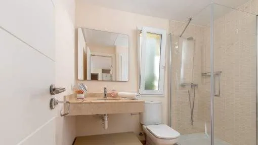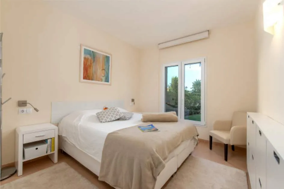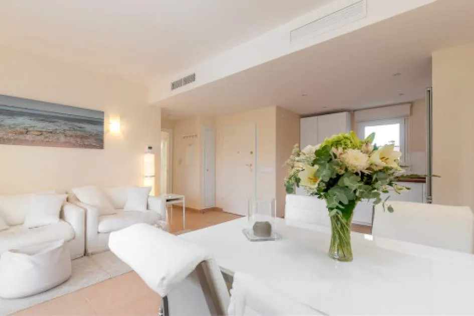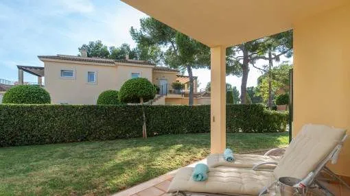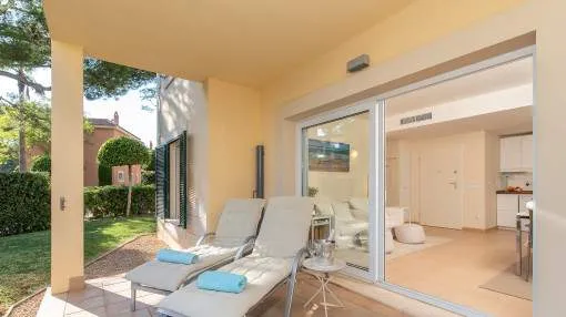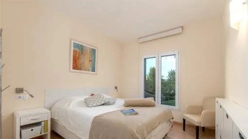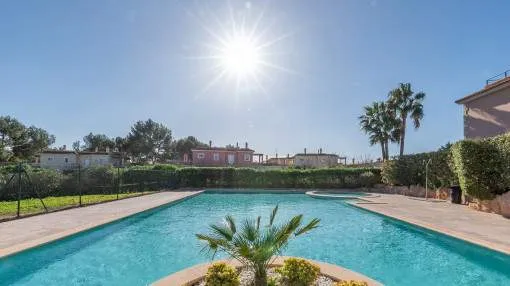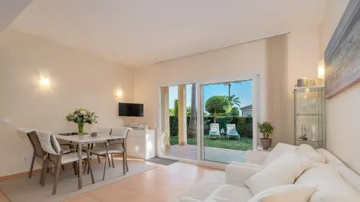 Details: Mediterranean living in a prime location: This beautiful garden apartment is located on the popular south coast of Mallorca and offers maximum privacy in a house with only two parties. Nestled in a dreamlike residence with a large pool area, you can enjoy peace and exclusivity in equal measure. The approximately 75 sqm apartment is light-flooded and modern. The centerpiece is the open-plan living and dining area with direct access to the private, secluded garden. The new kitchenette is elegantly integrated into the living concept. Two bedrooms - one with an en-suite bathroom - and an additional shower room ensure a high level of living comfort. The well-kept grounds with a spacious saltwater pool make the Mediterranean living idyll perfect. Hot/cold air conditioning, infrared heating in the bathrooms, WiFi and satellite TV are available for comfortable living all year round. You also benefit from a private parking space and one of the rare storage rooms - perfect for bicycles, golf bags or e-scooters . Whether as a vacation residence or a second home, this property combines quality of living with an excellent location while offering an attractive investment. Location & surrounding area: Directly at the marina of Sa Rápita, on the south coast, you find the dreamlike large sandy beach of Es Trenc, one of the most beautiful beaches of the island. The calm village is mainly popular among sailors and families. Especially small holiday houses are lined up along the steep coast. The village has a small supermarket, a bank, a bakery and a kiosk for the everyday needs. The village of Campos with large supermarkets and a weekly market is a short drive away. The best ice cream in Mallorca and several restaurants with sea views are found along the coastal road inviting cyclists, residents and tourists to stop for a bite to eat. Sa Rápita is only an approx. 25-minute drive away from the airport.