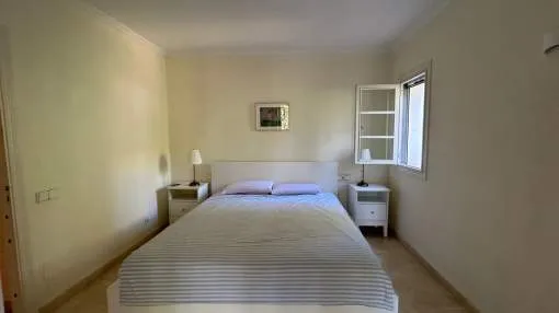 Available for short-term rent until mid-summer 2026, this elegant flat enjoys splendid views over the Bendinat Golf Course. With a constructed area of 125 m², it offers two covered terraces, a bright living-dining room with fireplace, and a fully equipped kitchen. The property is fully furnished and includes two double bedrooms as well as a complete bathroom with both shower and bathtub.