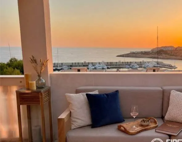 We present this modern fully renovated penthouse, located in one of the most sought-after areas of Port Adriano. The property offers a luxurious experience with stunning panoramic sea views from its spacious rooftop terrace.