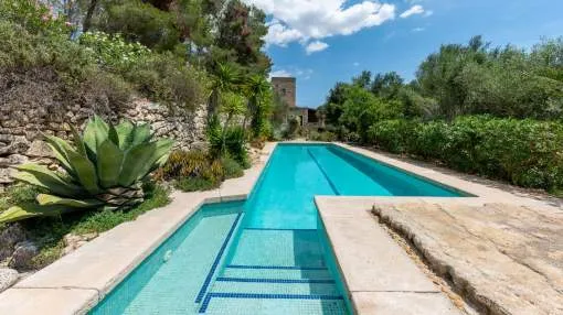 Details: This beautiful semi-detached house with the character of a villa is located on the second sea line, just a few minutes' walk from the fantastic Cala Pi beach. The plot is cross-cut, giving you plenty of space and freedom, coupled with beautiful sea views. The covered terrace leads into the spacious living area, with adjoining bathroom, a separate large kitchen, laundry room and access to the outdoor barbecue area. On the upper floor there is the master bedroom with en-suite bathroom and access to the terrace, as well as 2 further bedrooms which share a bathroom. Each also has access to the terrace with sea views. The 8x4 m pool is operated with salt and there is space for 2 cars to park on the plot. A separate pool toilet and storage space are also available. A property that is ideal for vacation or year-round living. Returns from holiday lettings: For initial orientation you can use the “Porta Holiday Returns Calculator” without obligation to calculate your potential returns from holiday letting. NB: Due to the current legal situation it is possible that in certain municipalities renting restrictions may apply, or new touristic licences may not be granted. Your Porta Mallorquina real estate consultant will be pleased to advise you whether the property you have chosen is affected. Go to Returns Calculator. Location & surrounding area: Cala Pi in the municipality of Llucmajor is mainly the name of the pretty bay and the torrent from which surged the bay. Among divers it is popular for its crystal clear water, among families for its white and fine sand. The little village Cala Pi offers some restaurants and small shops but has remained quiet.
