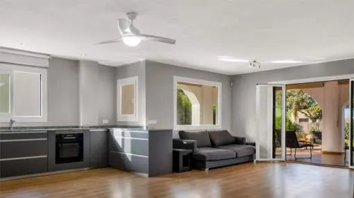 Located in one of the most pleasant residential areas of Santa Ponça, this spacious ground floor apartment features a private garden and access to a communal pool. Just 120 metres from the sea, it offers the perfect balance between comfort, brightness, and location.