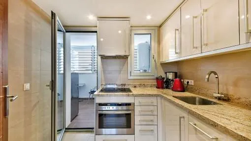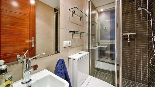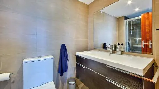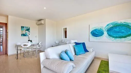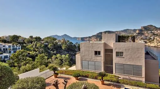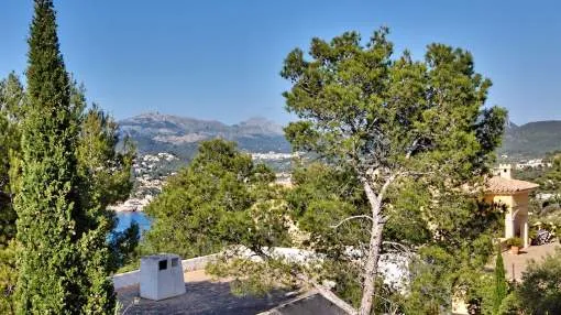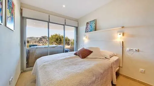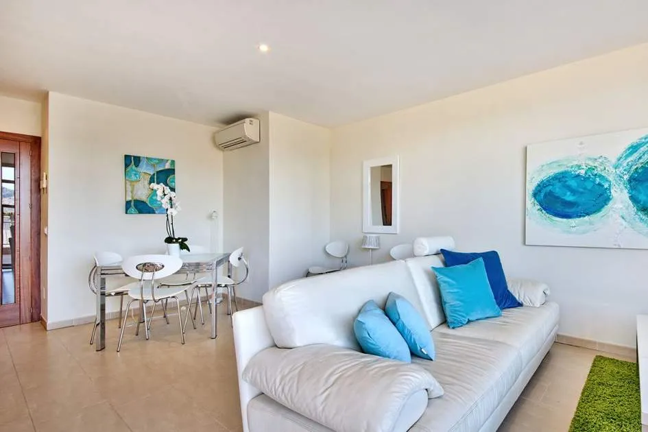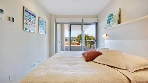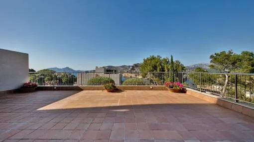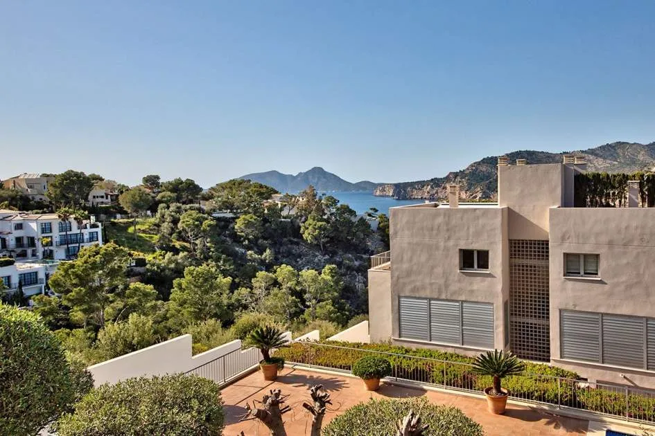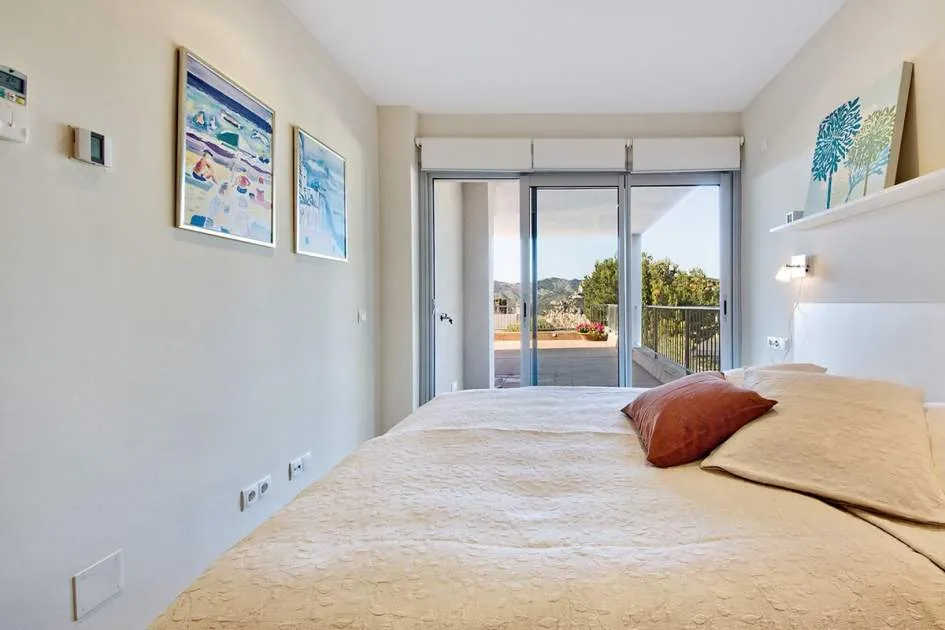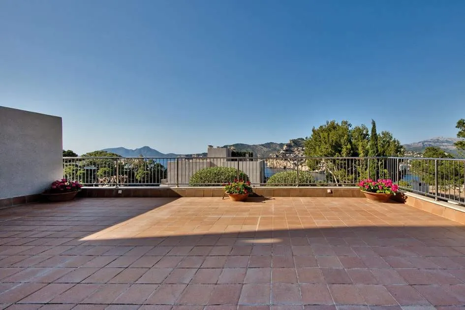 Groundfloor apartment with beautiful views to the Port and the Dragonera Island. Two bedrooms, one en-suite and an additional bathroom. Through the kitchen you access room, which can be used as a storage, laundry or just as a covered, south orientated terrace. The master bedroom and living room lead out to the spacious terrace, which is partly covered. Features of this apartment are underground parking, storage room and a community swimming pool. La Mola is the a peninsula located in the southern part of Puerto of Andratx part of the municipality of Andratx in southwest Mallorca.