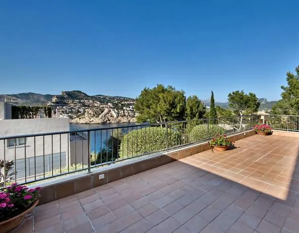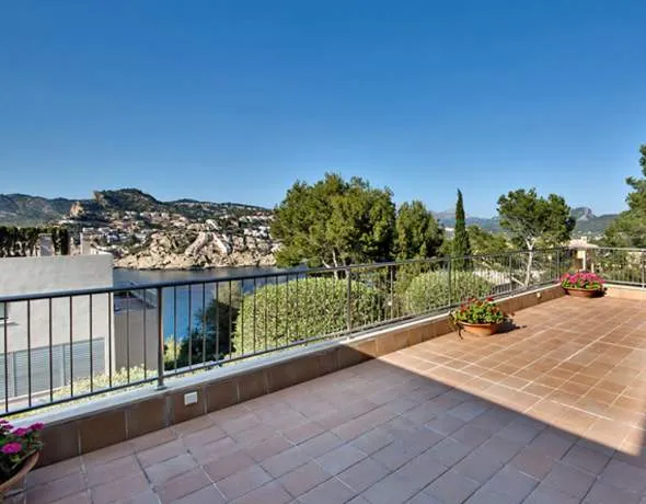 Groundfloor apartment with beautiful views to the Port and the Dragonera Island. Two bedrooms, one en-suite and an additional bathroom. Through the kitchen you access room, which can be used as a storage, laundry or just as a covered, south orientated terrace. The master bedroom and living room lead out to the spacious terrace, which is partly covered. Features of this apartment are underground parking, storage room and a community swimming pool. La Mola is the a peninsula located in the southern part of Puerto of Andratx part of the municipality of Andratx in southwest Mallorca.