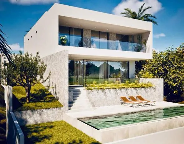 This exclusive villa on the southwestern coast of Mallorca is currently in the early stages of construction and impresses with its exceptional location, just around 100 metres from the renowned marina of Portals Nous and its beach. The property combines a modern architectural concept with a high degree of privacy and offers stunning panoramic views of the surrounding mountain landscape as well as partial sea views from the upper floor and the rooftop terrace.