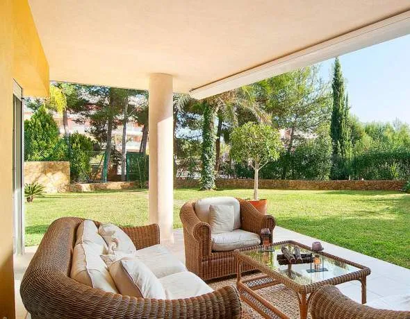 This high-quality ground floor apartment with a large private garden is located in a well-maintained development in Sol de Mallorca with a community garden and 2 swimming pools. The 4 bedroom, 4 bathroom property has a constructed area of 215 m² including 40 m² of covered terraces plus 400 m² of garden.