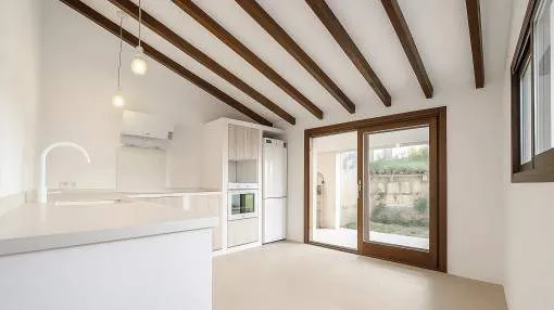 Details: This characterful village house, dating back to 1850, stands on the outer edge of Campanet, where authentic Mallorcan heritage meets contemporary comfort. The natural stone façade speaks to centuries of traditional island craftsmanship, while thoughtful renovations in 2002 and 2024 have carefully brought the property into the modern era without sacrificing its soul. The home encompasses 233 sqm of living space set upon a 635 sqm plot. Upon entering through the main door, a welcoming hallway reveals the ground floor layout: to the right, a small corridor leads to a bathroom and bedroom, as well as to the spacious living and dining area that was extended between 2018 and 2021. To the left lies another bedroom and the staircase to the upper floor. The kitchen opens onto a covered terrace that flows into the interior courtyard – that quintessentially Mallorcan space where life unfolds at the gentle pace of the Mediterranean. The upper floor hosts a double bedroom and an elegant master suite complete with en-suite bathroom and a generous terrace offering sweeping views across the surrounding countryside. At the rear of the plot, a landscaped garden with manicured lawn leads to the swimming pool, which was installed in the nineteen-nineties. The privileged position at the village boundary ensures open vistas across the landscape while maintaining easy access to local amenities and the charm of authentic village life. Here you can find some more interesting information to this property: https://tour.ogulo.com/YES0 Returns from holiday lettings: For initial orientation you can use the “Porta Holiday Returns Calculator” without obligation to calculate your potential returns from holiday letting. NB: Due to the current legal situation it is possible that in certain municipalities renting restrictions may apply, or new touristic licences may not be granted. Your Porta Mallorquina real estate consultant will be pleased to advise you whether the property you have chosen is affected. Go to Returns Calculator. Location & surrounding area: The North of Mallorca also offers a wide selection of charming areas, particularly inland. It has many pretty, yet typical small Mallorcan villages such as Campanet, Buger, Muro or Santa Margarita, which each offer a first hand experience of authentic island life and a taste of the original culture of this enchanting Mediterranean island as well as boasting their own unique characters. There are several alternatives to Pollensa or Alcudia if you want to look for a romantic town house or a secluded country house that's close to the beach. Especially Campanet and Buger each with immediate access to the 2006 created motorway between Palma-Alcudia, provide a further advantage in that it only takes 25 minutes to reach Palma by car.