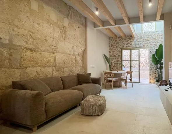 Charming house completely renovated in 2025, located in the heart of Sa Pobla, an unbeatable location that combines the tranquillity of the surroundings with proximity to all amenities. This elegant home perfectly blends traditional Mallorcan charm with contemporary comfort and design. Distributed over two floors, on the ground floor we find a bright living area with an integrated kitchen, a toilet under the stairs and access to a cosy terrace with a private swimming pool, ideal for enjoying the Mediterranean climate. On the first floor there are two spacious bedrooms and a full bathroom, while on the roof terrace there is a charming terrace with lots of character, perfect for relaxing or sharing pleasant evenings. The renovation has been carried out with top quality materials, maintaining original features such as the old stone walls and restored wooden beams, combined with modern finishes such as polished concrete flooring and a stone staircase. The property has underfloor heating, air conditioning and completely new water and electricity installations. A unique property, ready to move into, offering all modern comforts without sacrificing Mallorcan character and authenticity.
