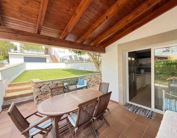 This house stands out for its good distribution. On the ground floor, it has a spacious living-dining room open to the kitchen with direct access to the terrace and garden area. It also has a double bedroom and a bathroom, as well as a pantry. On the first floor, there are three bedrooms with two bathrooms, the main bedroom being approximately 40m². Finally, in the basement, there is a laundry room and a large garage where three cars can be stored. It also has a communal swimming pool (the community consists of only three houses). It is in excellent condition, move-in ready.