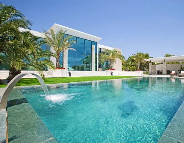 Only a 20-minute drive from Palma, this villa with top of the range fixtures and fittings is situated in one of the most exclusive residential areas in the southwest of Mallorca. The south-facing plot is near two renowned marinas, several golf courses, as well as the town center, offering a perfect combination of tranquility, privacy, and excellent infrastructure.