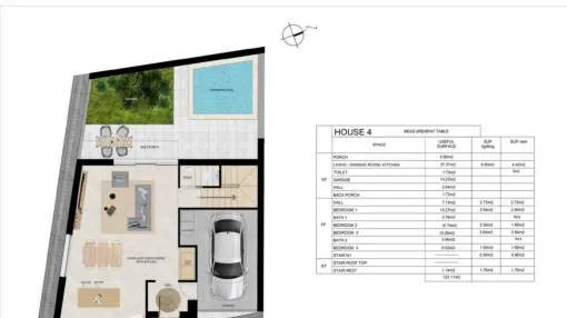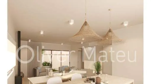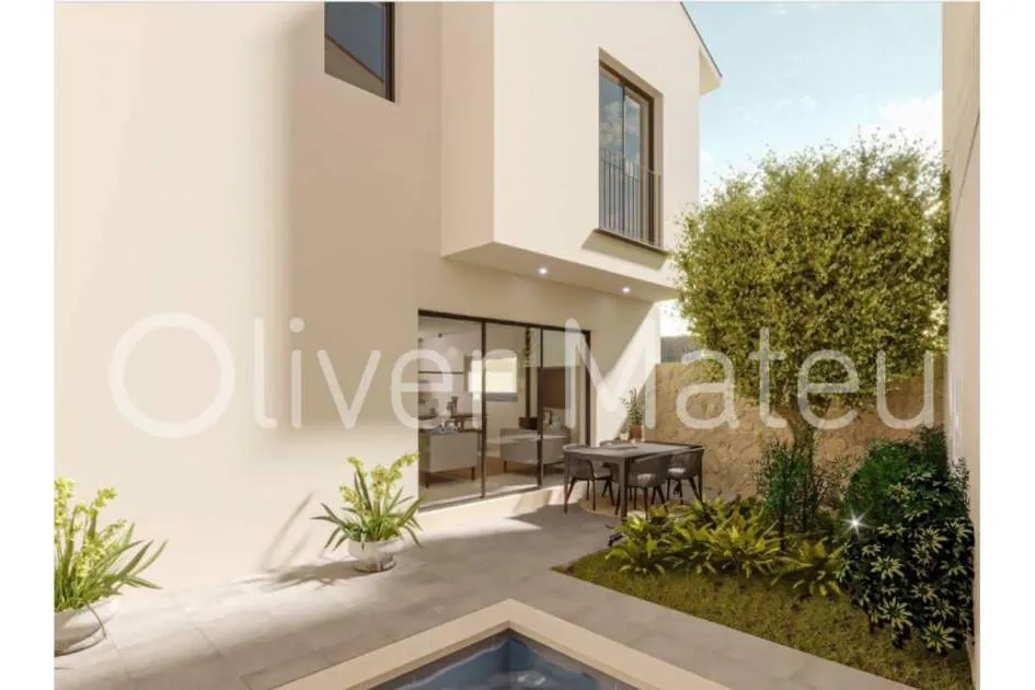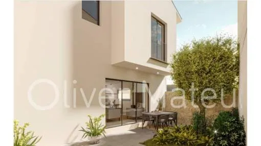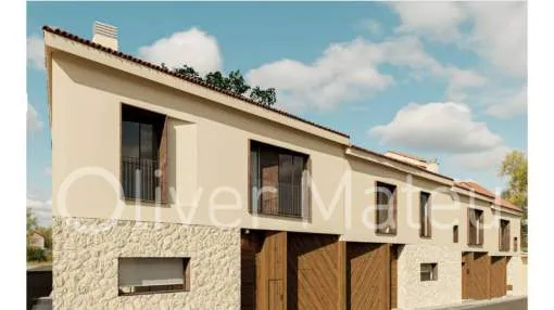 New project. Semi-detached houses with garden, garage and swimming pool (optional) in Sa Cabaneta, 233 m2 approx. in 3 floors. Ground floor with living/dining-room and open plan fitted kitchen, guest toilet, access to porch, garden and swimming pool. First floor with 3 double bedrooms with fitted wardrobes, 2 bathrooms (1 en suite) and access to roof terrace with clear views. Quality construction with typical materials of the island, expected completion date May 2025. Please contact us for more information.