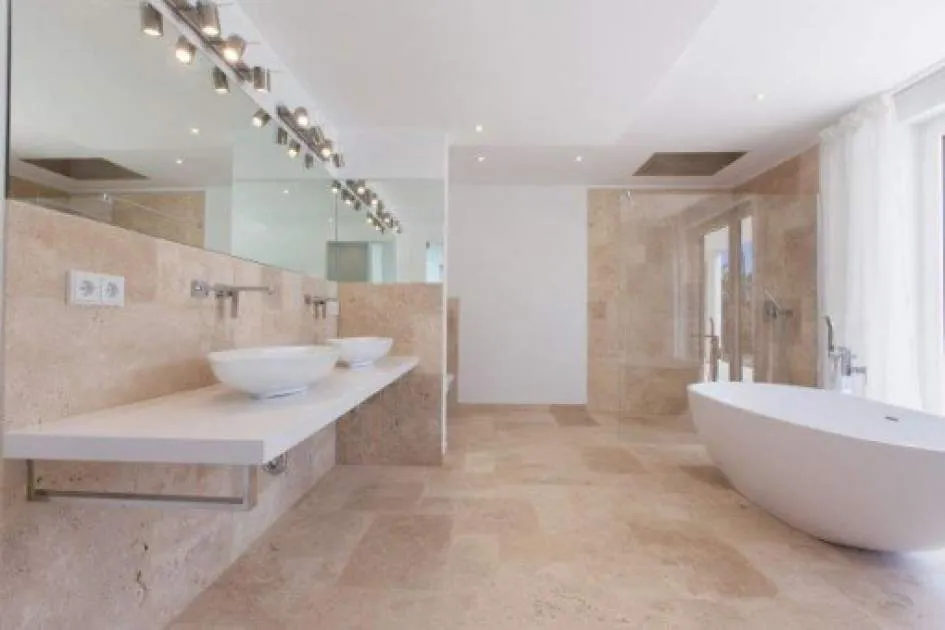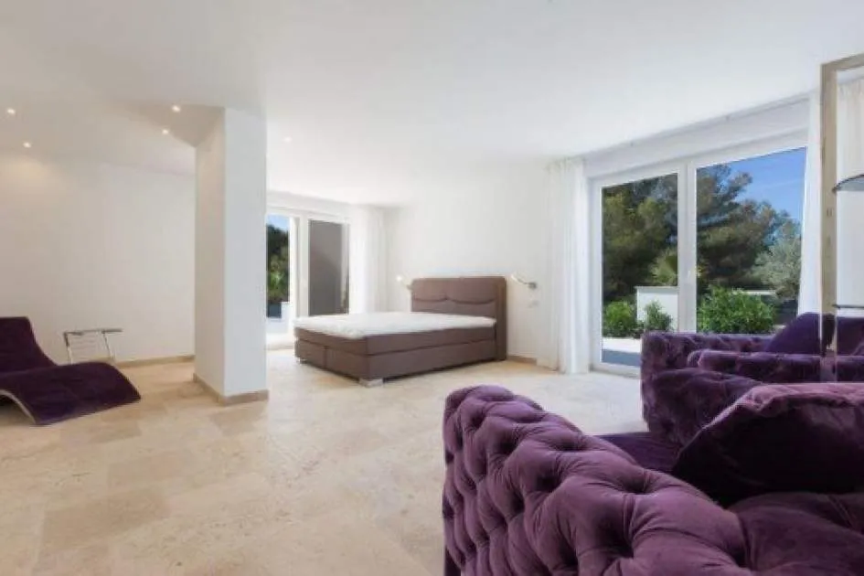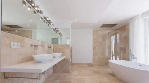 Details: This attractive family villa is situated in a desirable location in Santa Ponsa. From its large roof terrace fantastic sea views can be enjoyed. Its living space of 324 sqm is spread over 2 levels. On the upper floor is the generously-sized living/dining area with fully-equipped kitchen, with large window frontages which flood the rooms with light and also provide access to a separate terrace. Located on the ground floor are 4 modern bedrooms with en-suite bathrooms, all of which have access to the terrace and the garden. The garden area of the villa is very well-maintained and contains a modern pool. Further features include air conditioning, underfloor heating and a garage. Location & surrounding area: Santa Ponsa is located only 20 minutes from the island capital of Palma in the south-west of the island. The town centre is grouped around an elongated bay surrounded by rock walls, and numerous typical Mallorcan and international restaurants, cafés and shops are located on the promenade which is separated from the beach area by a road. The beautiful sandy beach is orientated to the west so the sun can be enjoyed until late in the evening. Santa Ponsa has a good, year-round infrastructure and is suitable both for long walks, boat trips, cycling tours, swimming, tennis and golf. Wimbeldon flair can be experienced on the tennis courts, where world tournament players competed at the opening in 2016, and a few minutes from the town centre is a picturesque yacht harbour, the Club Nautico. Santa Ponsa is today noted for its high standard of living, but also has historical importance. Near the town, on the Puig de Sa Morisca, was a Talaiot settlement dating from ancient times to the Moorish era. A little later, in the 13th century, Santa Ponça was the site of a major event for Mallorca - in September 1229 King Jaume I of Aragón landed with his army and led the reconquest of the island from the Moors and to commemorate this a monumental stone cross was erected. Every year during the first week of September the "Fiesta Rei En Jaume" takes place, the highlights of which are the reenactment of the battle and a procession. Outside the town centre and nestled between 3 golf courses and Port Adriano is Nova Santa Ponsa, one of the most exclusive residential areas of the island. Here the Mediterranean lifestyle can be enjoyed amongst celebrities, and golf can be played in exclusive golf resorts. The beautiful apartments in well-kept grounds and dreamlike luxury villas have attracted wealthy tourists and residents from many different countries. A special highlight is the new and very exclusive marina of Port Adriano, designed by the French architect Philippe Starck and one of the most modern ports in the Mediterranean. Motor and sailing yachts with a length of up to 90 metres can be housed here. The harbour, with its 2-storey pier stretching into the sea, has a modern design and offers a fine selection of businesses from fashion boutiques and restaurants up to yacht brokers. On the upper floor at the end of the pier the "Zanzibar" restaurant, well known from the island of Sylt, has secured the best position to enjoy the beautiful view and the sunshine in a modern ambience during the day, or the harbour atmosphere with a cocktail in the evening.