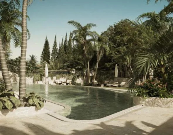 Set within a tropical garden landscape and offering stunning views of the Mediterranean, the project combines Mediterranean lightness with timeless elegance. High-quality natural materials such as stone and wood, bespoke designer kitchens, floor-to-ceiling sliding doors and exquisite marble floors create a refined living atmosphere that perfectly blends tranquillity and luxury.