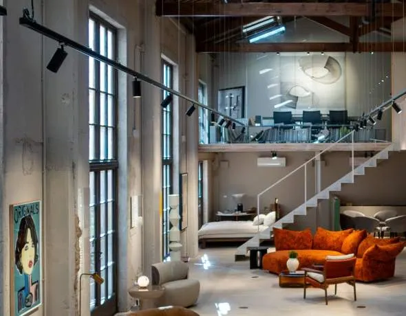 With a total area of 370 m² spread over two levels, including a 70 m² interior courtyard, this property combines historic charm with contemporary comfort. Built in 1905, the building impresses with ceiling heights of up to seven meters, five skylights, and four-meter-high windows that flood the space with natural light, creating a unique atmosphere. During the renovation, all electrical systems, air conditioning, and sanitary facilities were renewed. The premises are equipped with a state-of-the-art fiber-optic network supporting over 40 workstations, several glazed offices and meeting rooms, three fully fitted bathrooms, as well as provisions for two kitchens. New heating and air conditioning systems have also been installed.