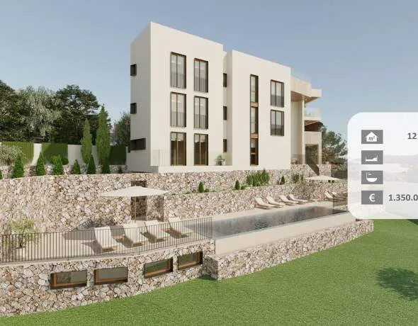 This modern new-build project with 6 exclusive apartments, a communal garden, swimming pool, and underground garage will be completed in Cala Mayor the first quarter of 2026. The coastal town is one of the most sought-after residential areas on the outskirts of Palma and offers a beautiful sandy beach, a good selection of restaurants, shops, and services, as well as a small marina. Thanks to its ideal transport connections, the entire southwest of the island with lovely beaches, renowned golf courses, and exclusive yacht clubs are within a few minutes’ drive. Palma’s centre and the harbour are just 5 minutes away.