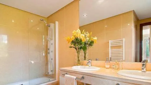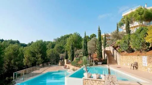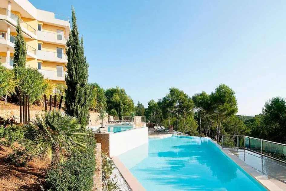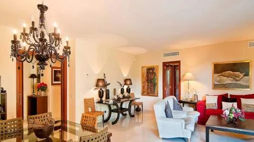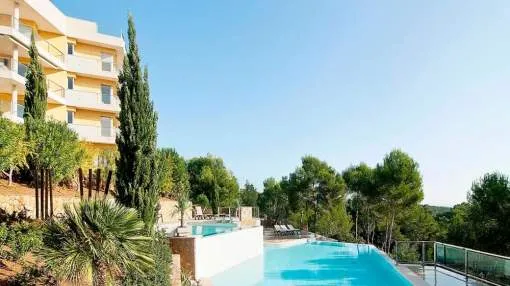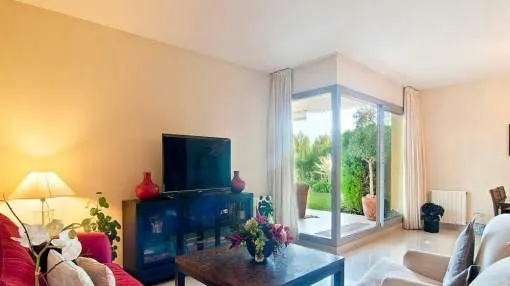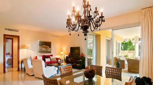 Elegant modern ground floor apartment in a stunning residence in Sol de Mallorca, a small coastal town in the south west of Mallorca.