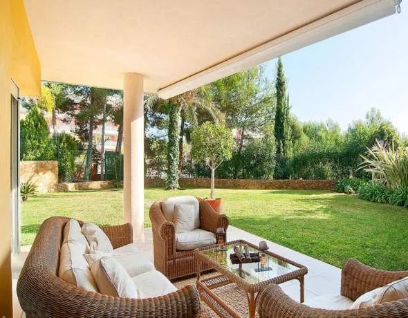 Elegant modern ground floor apartment in a stunning residence in Sol de Mallorca, a small coastal town in the south west of Mallorca.