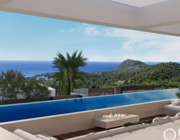 This impressive new-build villa is located in an elevated and quiet area of Paguera, offering breathtaking views of the sea and the bay of Camp de Mar from every room. A remarkable patio spans three levels and features a gentle water element, creating a serene and relaxing atmosphere. The stylish bodega serves as a wine paradise, room divider, and design highlight all at once.