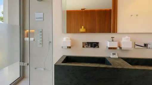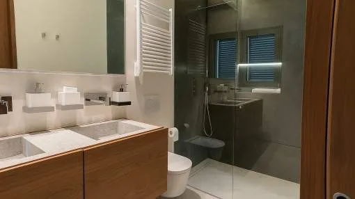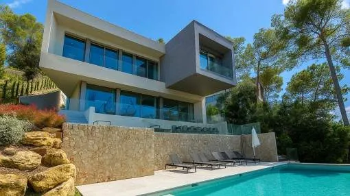 In the sought-after residential area of Gotmar, Puerto Pollensa, this newly built villa blends architectural clarity with Mediterranean ease and state-of-the-art home technology. Set on an approx. 1,080 m² plot, it offers space, light and premium materials—just a short walk from the beach and local amenities.
