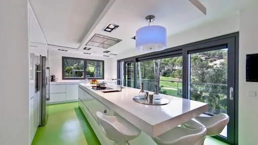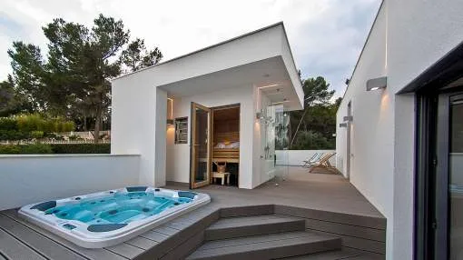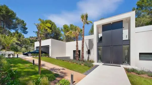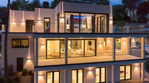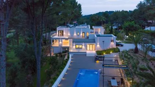 Located in one of the most exclusive residential areas of Mallorca, right next to the renowned Son Vida golf course, this modern luxury villa sits on a plot of approximately 2.000 m² and offers a high level of privacy. The property combines contemporary living comfort, elegant finishes, and a state-of-the-art home technology.