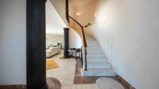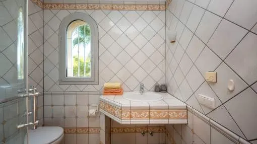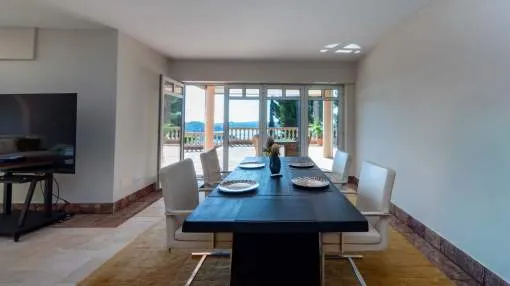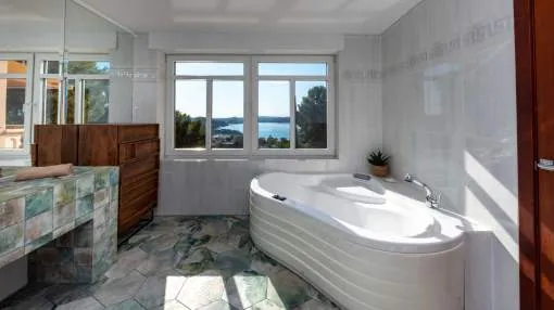 This elegant Mediterranean villa on Mallorca’s southwest coast offers incredible views and top-level comfort just minutes from the beach. The home spans 2 levels with bright, open spaces and large windows framing breathtaking sea views. The main living and dining area flows seamlessly onto terraces and the pool, blending indoor and outdoor living. The villa features three bedrooms with en-suite bathrooms, a guest WC, and modern amenities including gas under floor heating and built in air conditioning for year-round comfort. The highlight is the spacious terrace with a heated saltwater pool—perfect for swimming, relaxing, or entertaining while enjoying uninterrupted views of the Mediterranean.