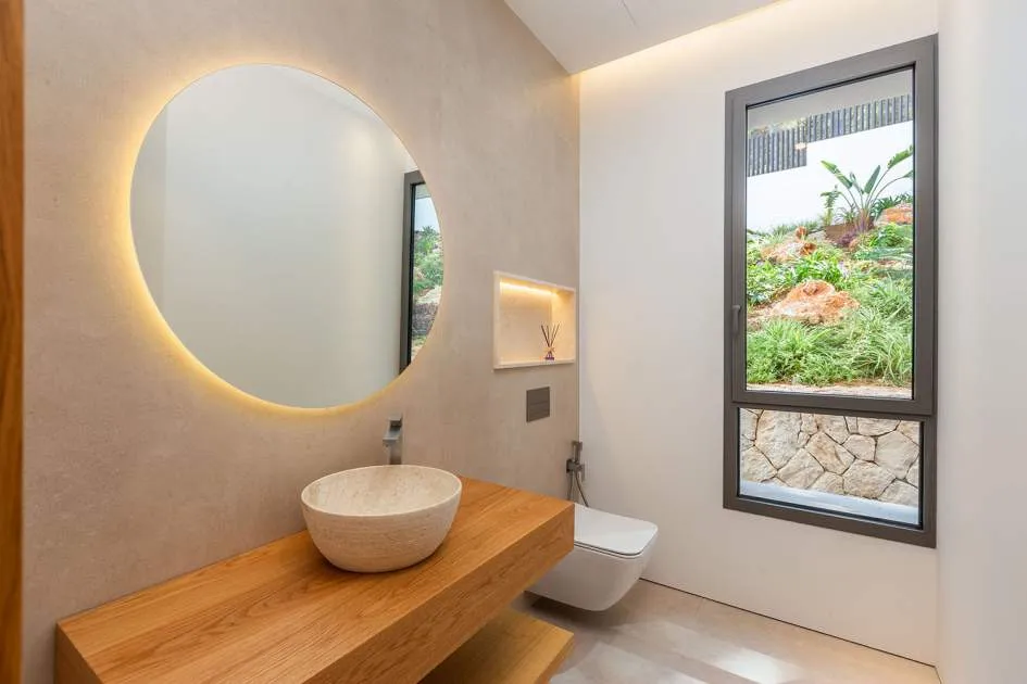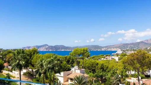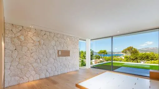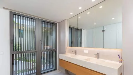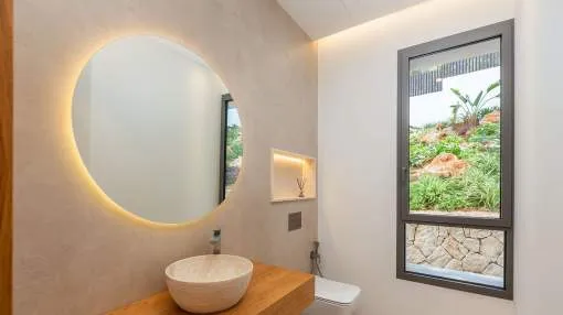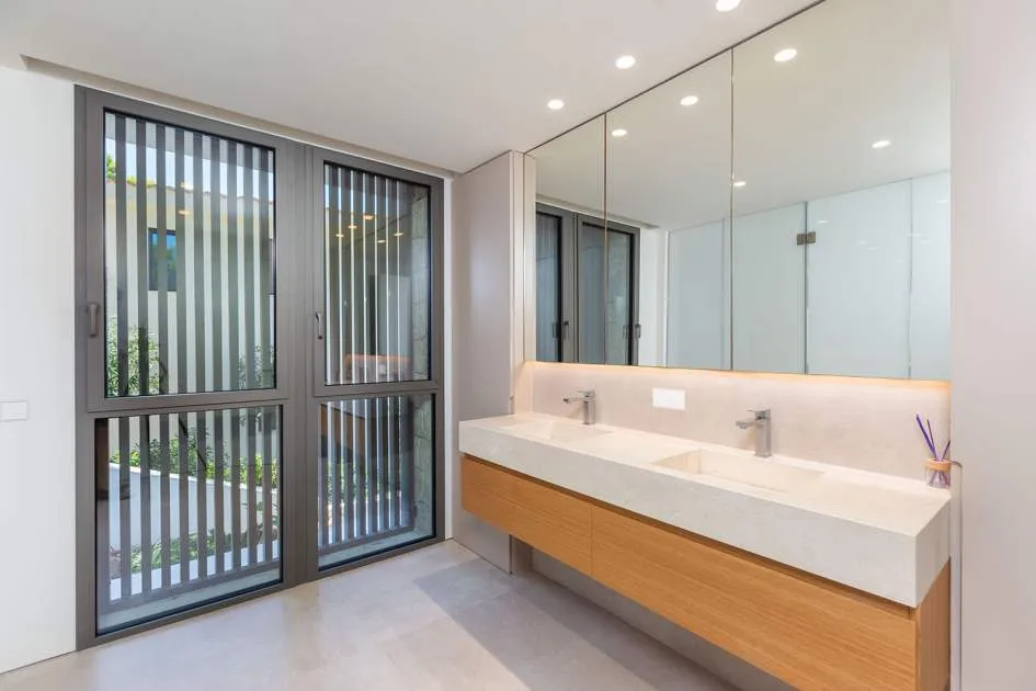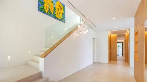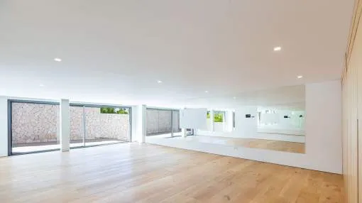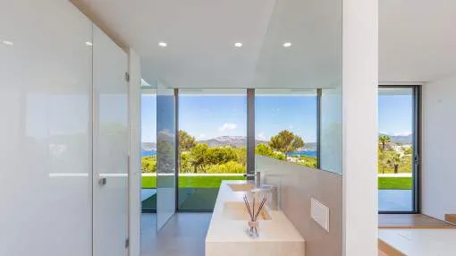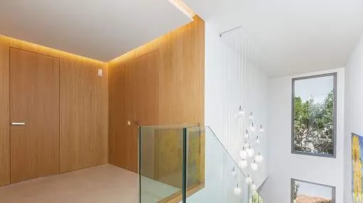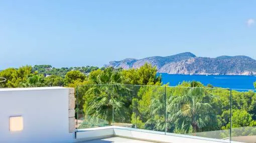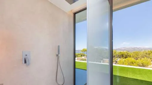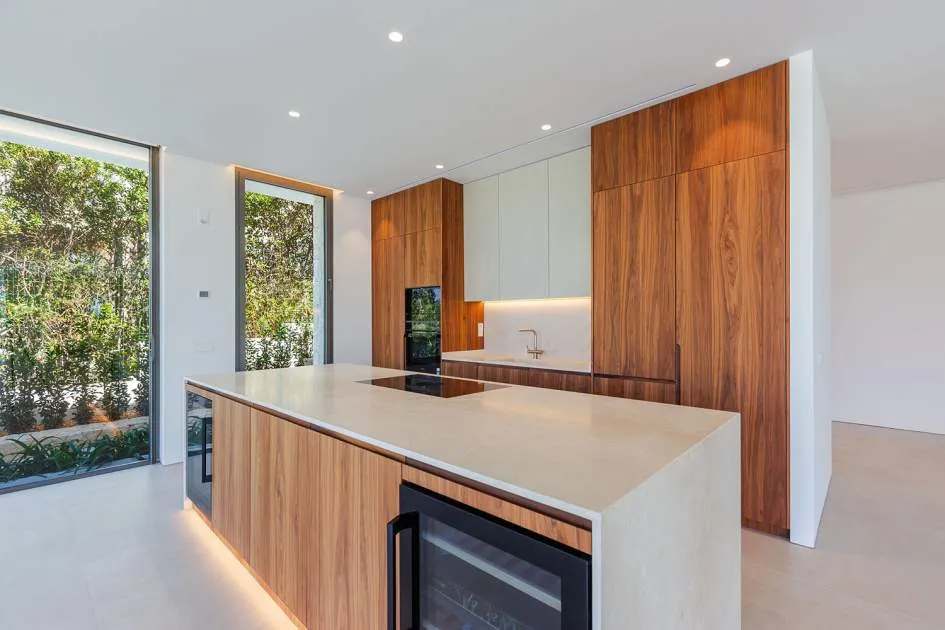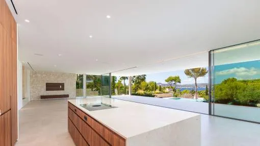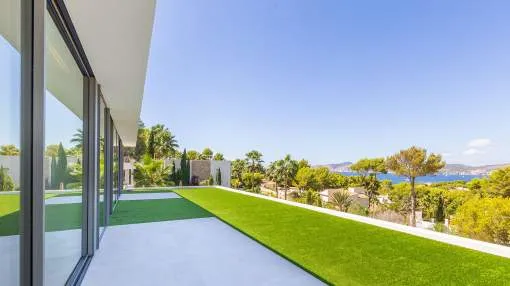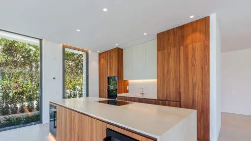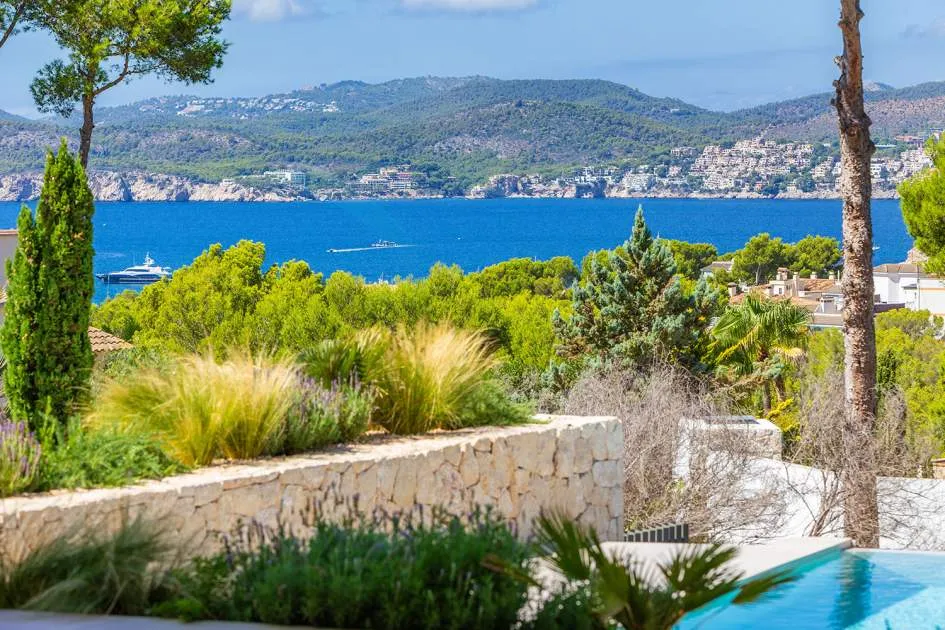 Located in one of the most exclusive villa urbanisations of Santa Ponsa, this stylish new-build villa is a modern retreat with high privacy. The tranquil residential area borders directly on a vast nature reserve, accessible via a permitted garden gate. At the same time, the location impresses with its proximity to the centre: three renowned golf courses and several marinas are in the immediate vicinity. The large sandy beach of Santa Ponsa, idyllic coves, sports and leisure facilities, as well as numerous shopping and dining options, are within few minutes by car.